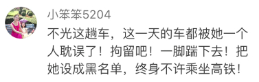 这时列车已经晚点,却因为女子的行为无法发车。不少乘客指责女子: