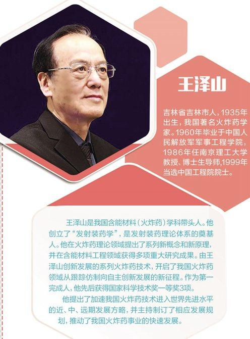 面对新时代科技强国的召唤,王泽山觉得自己“还很年轻”,他带领团队瞄准不用溶剂制出无烟火药这一目标,再次发起冲击。他说:“火炸药是一个国家国防实力的重要体现,国家的需要就是我的研究方向。”