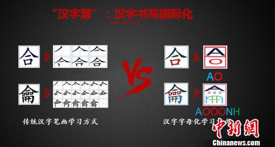 活动启动现场,由重庆字曌教育科技有限公司历时7年研发的“汉字慧”字母化汉字教学专利项目吸引众人目光。“我无意中发现甲骨文和英文字母特别相像,就萌生了用英文字母解构汉字的想法。”“汉字慧”系统研发负责人高晓明透露,目前,该系统已用26个英文字母解构了8000多个汉字,如“区”可解构为“CX”,“善”可解构为“KHKO”,最繁复的汉字只需要12个字母就可以解构,能让外国人轻松突破汉字书写的难关,运用字母直观地学会汉字书写。