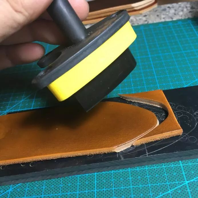 铺开几尺皮料,划线、裁切、打斩、缝合