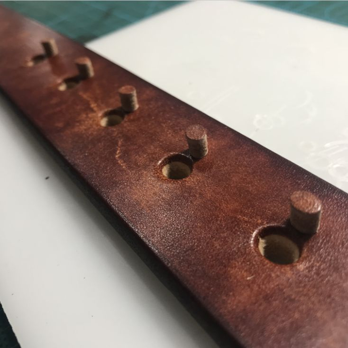 想象一下:这根皮带上的每一个孔都是你亲手打下的;每一根线迹都是你亲手缝制的;每一条边线也是你一次次反复打磨过的……它的每一个细节都在你的把握之中。它的美,三分之一来自造物主的赐予;还有三分之一来自你的用心;而剩余的三分之一,将期待使用者的给予……这是多么美好的事啊!
