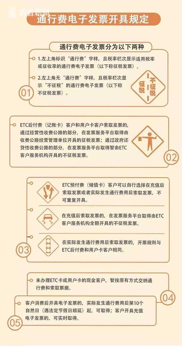 2018年1月1日以后使用ETC卡或用户卡缴纳的通行费,以及ETC卡充值费可以开具通行费电子发票,不再开具纸质票据。