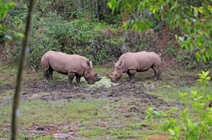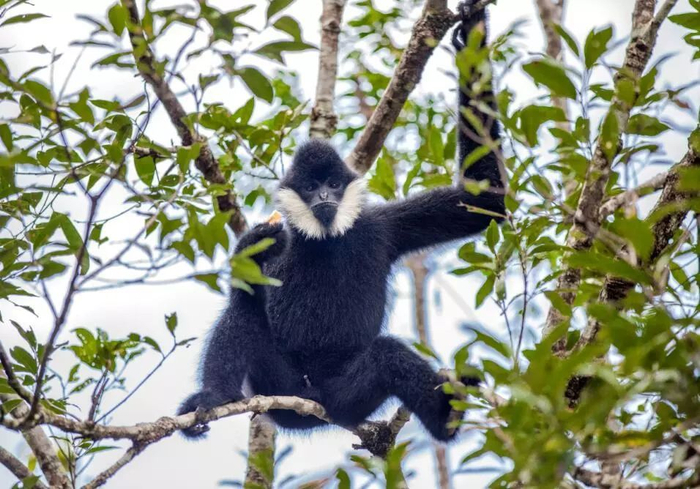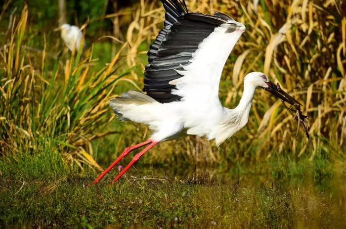 上图:白颊长臂猿 下左:白犀牛 下右:东方白鹳