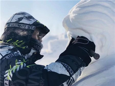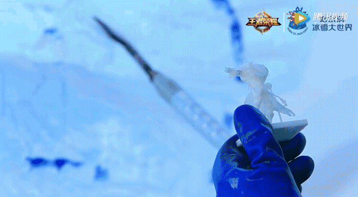 为了高标准的完成这次全球规模最大的冰雪雕艺术与数字文创产品的融合,各位冰雕师们付出了艰辛的努力,施工周期短、雕刻难度大,负责十大英雄冰雕形象雕刻的邱广会老师已从事冰雪雕艺术工作38年,今年他作为王者荣耀景区的雕刻主要负责人,也是倍感压力。