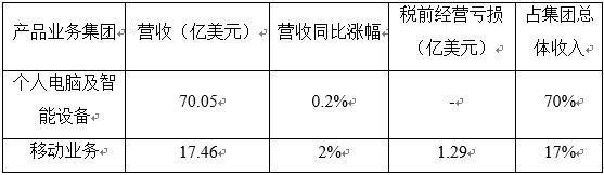 表3 2017/18年度联想第一季度财报摘要