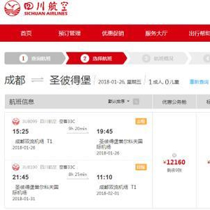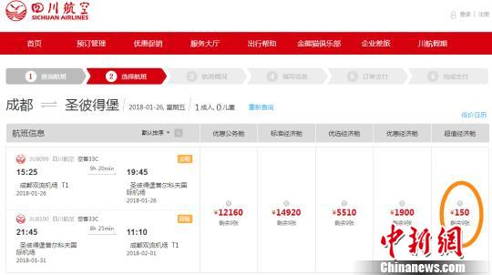 中新网成都1月11日电(杨珺)记者11日从四川航空股份有限公司(以下简称:川航)获悉,2018年1月26日,川航将开通成都至圣彼得堡航线,这是继成都至莫斯科后,川航开通的第二条成都直飞俄罗斯航线。