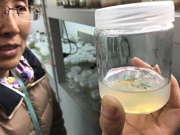 这些五裂黄连尚未开花结果,如何繁育下一代?浙大专家提出采用组织培养技术:采小半片叶子、一小段芽儿,利用培养基,在密封的玻璃罐中就能诱导植物分化出其他组织,最终长成完整植株。浙大生命科学学院组培技术专家姜维梅老师介绍,五裂黄连组织培养的现有资料不多,消毒除菌、培养基配方等各环节都有大量工艺需要自主探索。目前,第一批组织培养已经开始。