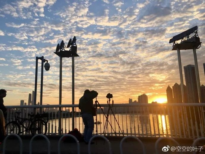 海印桥上的拍客们在捕捉日出