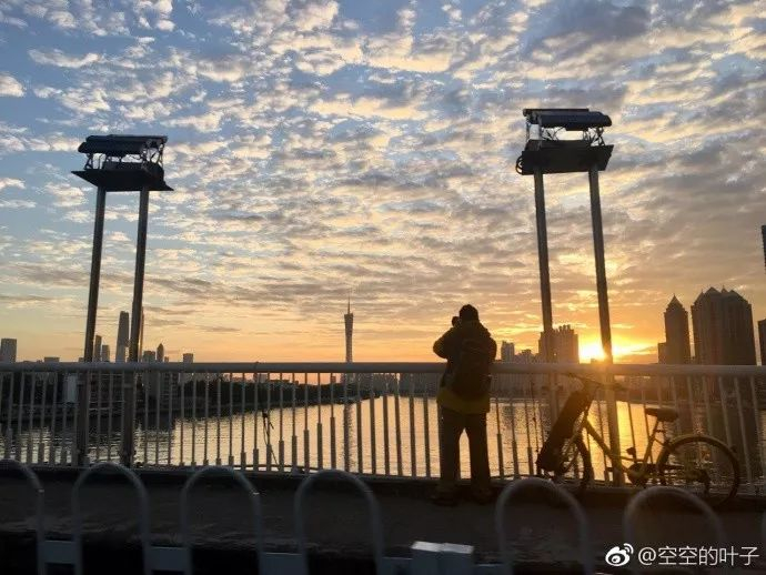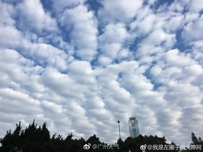 实际上,“阴阳天”是一种少见但并不诡异的天气现象,这是由于中高空存在不同方向、不同水汽含量的气流,也就是气象术语中的风切变所造成的。今天的边缘整齐的阴阳云属于透光高积云,预示着近期广东将维持晴冷干燥的天气。