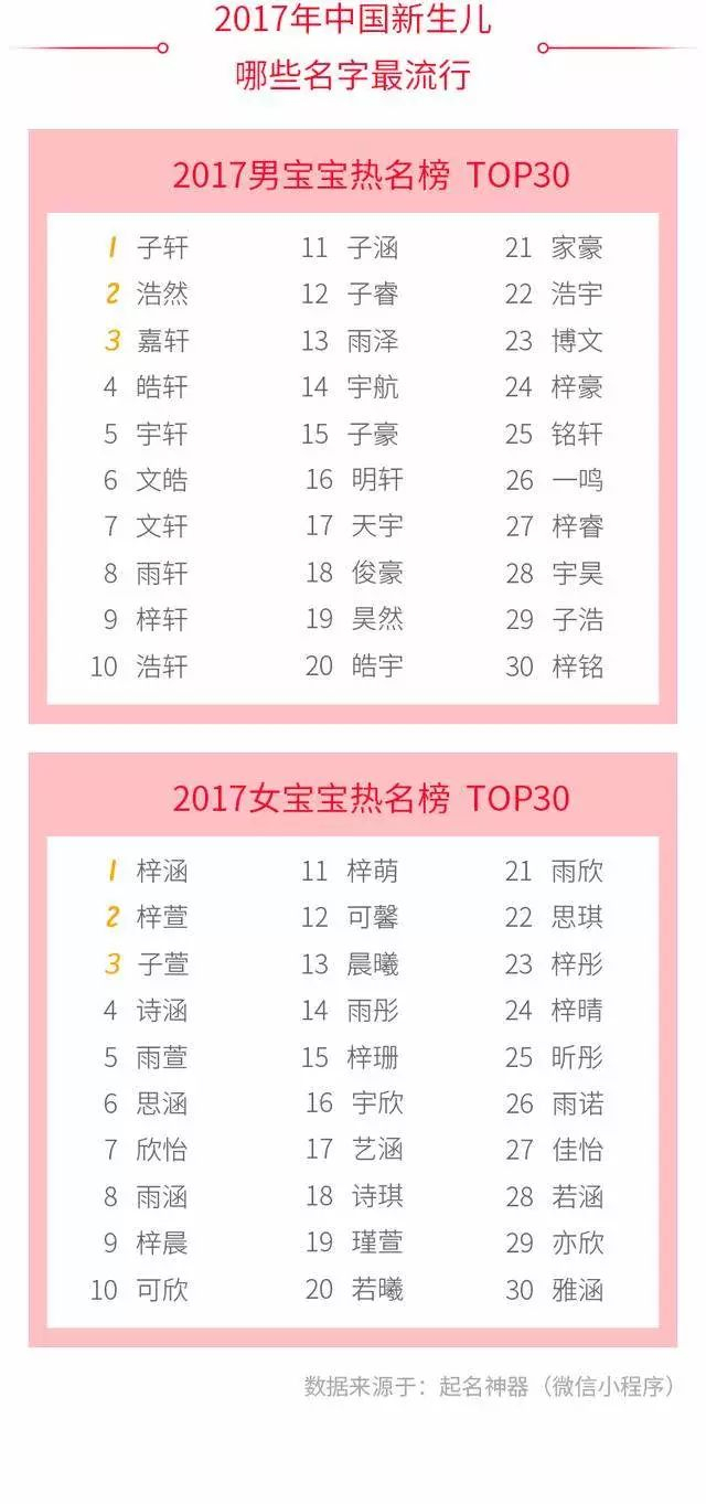 《2017新生儿名字大数据年度榜单》