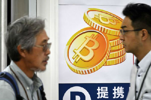 日本东京一处地铁站内的比特币广告(美国《华尔街日报》网站)