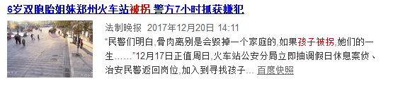 后来,我将事情经过告诉了几个家有同样年龄孩子的朋友,大家交流了一下最近报道的一些抢孩子的事件,觉得恐怖极了: