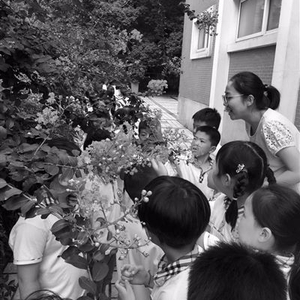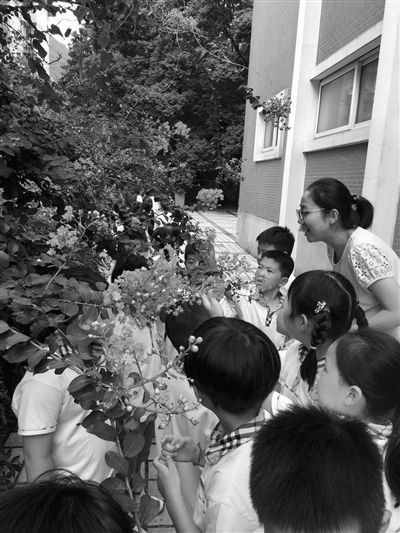 半山实验学校老师带学生在校园里观察植物 图源:杭州日报-每日商报
