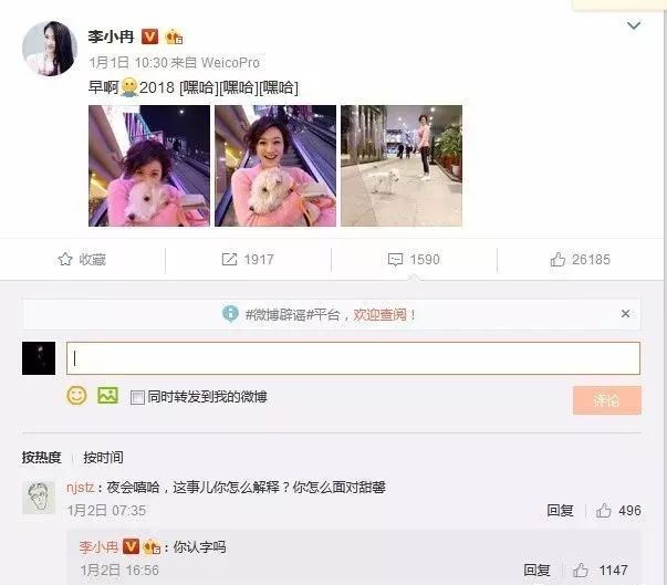 逼得直性子的李小冉直怼“你认字吗?”顺手发了一张自拍,并配文“我叫李小冉,冉、冉、冉”然后就此上了热搜。