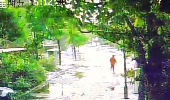 然后明明走了出去,到小区后面去玩了。3点多钟,明明再次出现在监控中。此时,明明手里没有了手机,他低着头在路上寻找着。