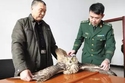 猫头鹰“身体不适”撞电线杆警民联手施救