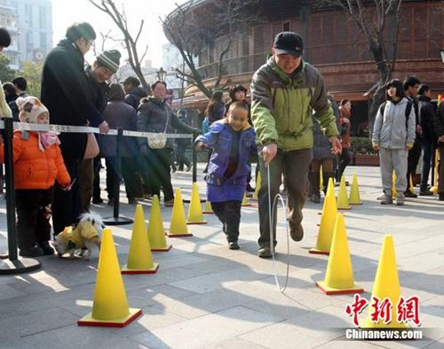 资料图:龙年正月初三,在武汉新天地龙年新春庙会上大人小孩一起玩“那些年我们一起玩的游戏”,打弹珠、踢毽子、滚铁圈等。中新社发 张畅 摄