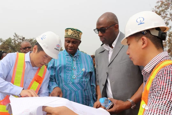 尼日利亚联邦政府交通部长(左二)现场检查。(中土集团供图)