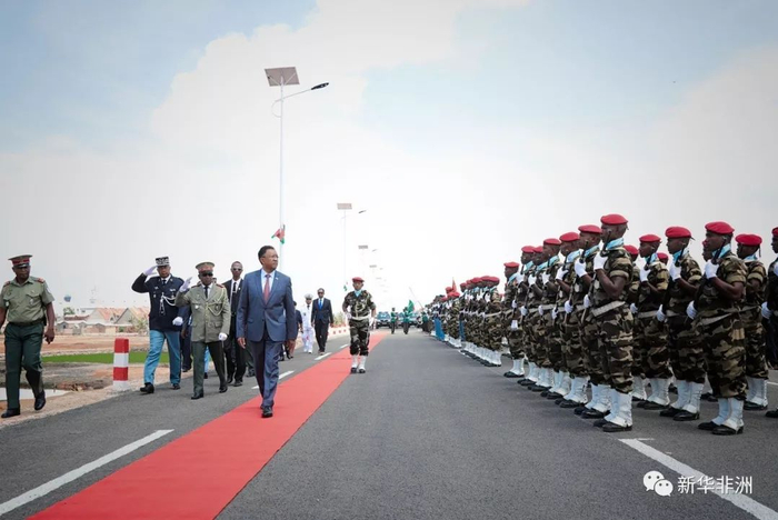 马达加斯加共和国总统埃里在一期工程通车典礼上阅兵。(项目方供图)