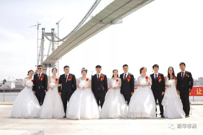 2017年12月25日承建方中国路桥公司员工大桥下举办集体婚礼。(项目方供图)