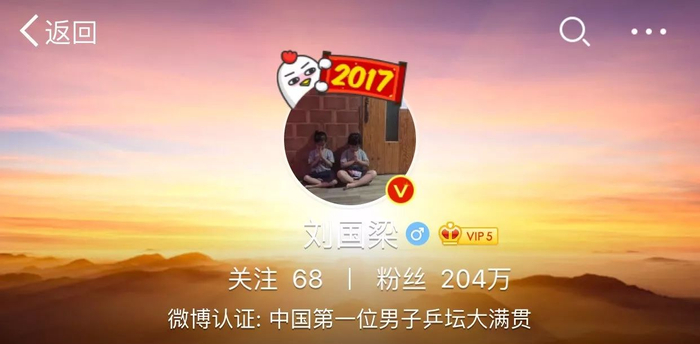 他的微博认证也已不再是熟悉的“中国乒乓球队总教练”,而变成了“中国第一位男子乒坛大满贯”。