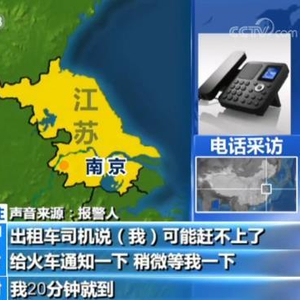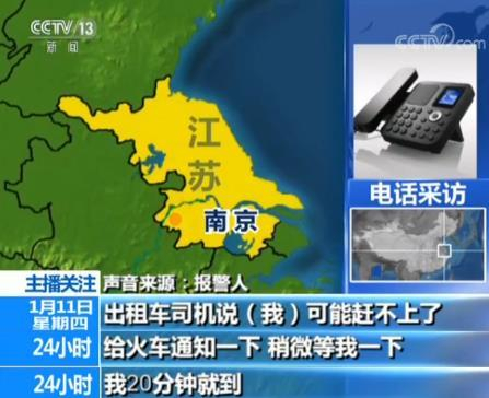 报警人:我刚到南京禄口机场,我现在要到南京南站赶车,到宜兴。我现在在高速公路上,出租车司机可能赶不上了。赶不上的话能不能麻烦你们给火车通知一下稍微等我一下,我20分钟就到。