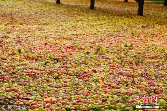 资料图:掉落的苹果铺满果园。图片来源:视觉中国