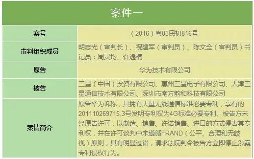 华为诉三星侵犯专利权案作出一审判决,