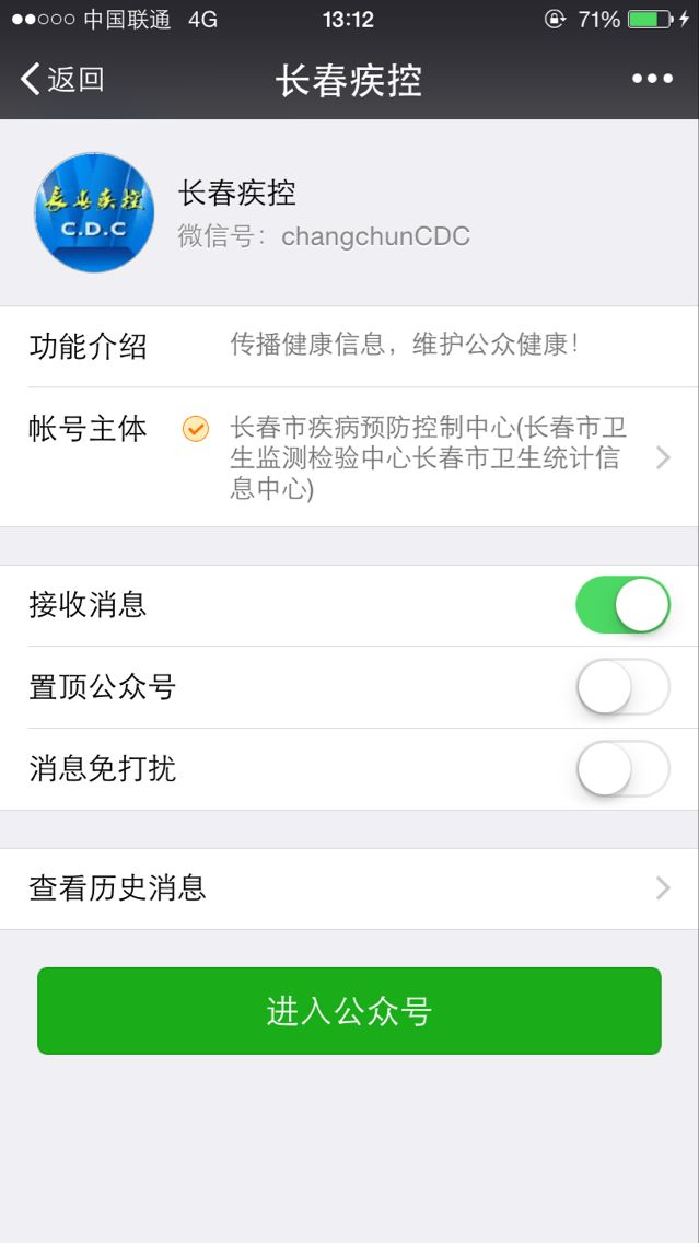 微信关注官方微信公众号“长春疾控”