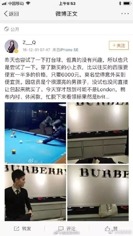据不少网友晒出的截图显示,张晴多次在个人微博及朋友圈内炫耀自己购买的巴宝莉、香奈儿等奢侈品或轻奢品。