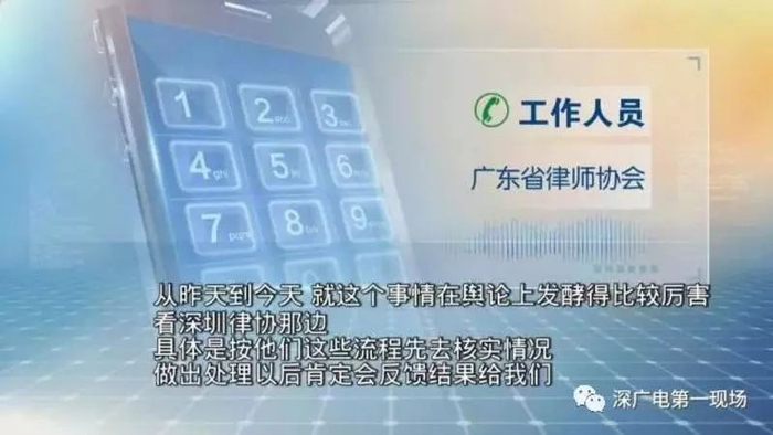 10日下午,记者联系上了广东省律师协会的工作人员,据介绍,目前还未得到反馈,具体调查结果将会由深圳市律师协会通过官方途径公布。
