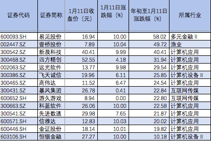区块链概念股持续火爆,1月11日再次掀起涨停潮。