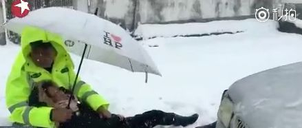 ▶安徽交警朱华峰巡逻时发现一名女子遭遇车祸躺在雪地里,他为女子撑起雨伞,并蹲坐在冰冷的雪地中给受伤女子充当靠枕,直到救援人员赶到。