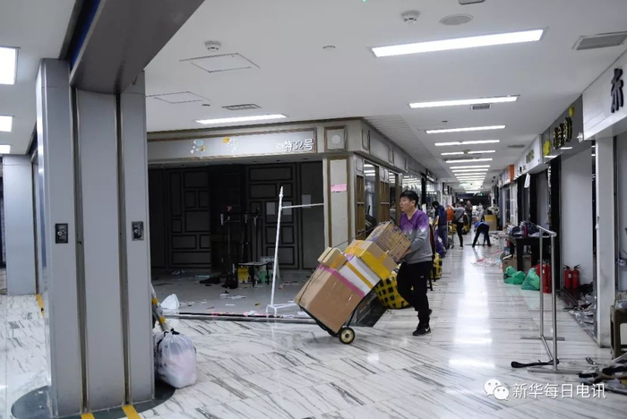 天和白马闭市前,记者多次前往商场。和往日熙熙攘攘的人潮相比,此时的“动批”人流明显减少。商场外贴着疏解公告,挂出了疏解倒计时的牌子;商场内商户们纷纷打出“撤摊狂甩”“一条不留”等标语。