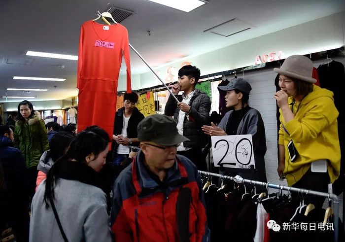 初冬中午,当记者走进东鼎服装批发市场时,看到穿着黑色热裤、紧身上衣的导购小姐,站在半米左右的台子上,先穿上一件短裙,不到一分钟时间,又迅速脱下裙子。