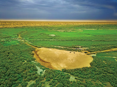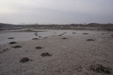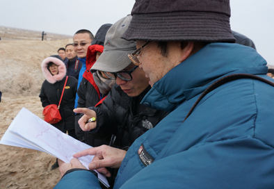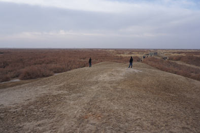 严冬封锁了大地,温度降至零下。地表被白色覆盖,遥观似雪,近看是盐碱一片。北京大学考古文博学院教授陈凌带领前来考察的专家们从红柳丛中的小路穿过,一条蜿蜒的土色城圈遗存如冬眠的巨兽,岿然卧在盐碱滩上。