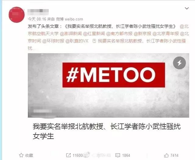 1月1日,女博士罗茜茜在12年之后,通过微信公众号发文,实名举报北京航空航天大学教授陈小武性骚扰女学生,并于次日通过微信公众号例举证词、录音等证据。
