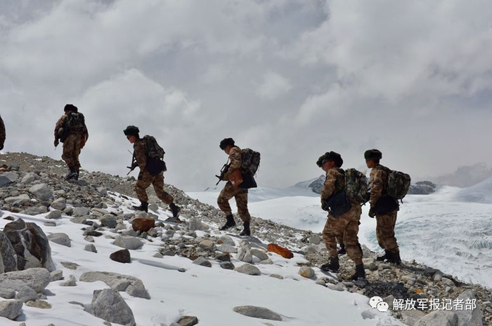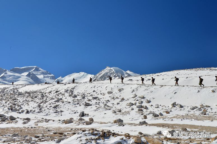 官兵们行走在茫茫雪域高原(邹佐坪 摄)