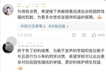 也有人表示,希望能迅速出台校园防性骚扰机制。↓