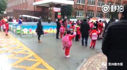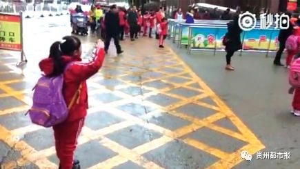 事实上,当天网友拍摄视频时,确实看到部分学生站在校门口黄色网格道路上,但其实孩子身后都有老师、保安以及家长保护的。