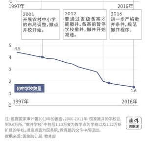 2001年,国务院发布了《国务院关于基础教育改革与发展的决定》(下称决定),提出“适应城镇化进程和学龄人口波动的需要,合理规划和调整义务教育学校布局”。2001年后,全国农村地区开展了大规模的义务教育学校布局调整。