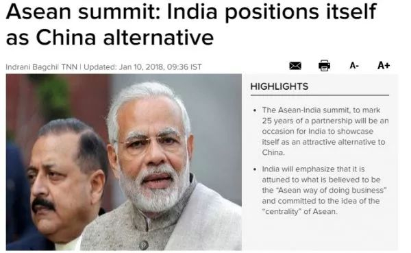 最近几天,印度媒体纷纷对此进行预热报道,一派喜气洋洋的氛围。在印度国内舆论看来,这意味着其在东盟地区影响力的扩大,国际影响力大幅度提升。甚至有印媒为此喜不自禁,宣称这是“取代中国”的好机会!