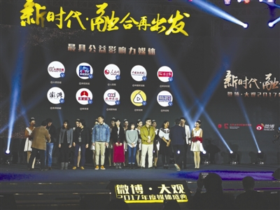 昨日下午,由北京大学新媒体研究院主办、微博承办的“微博·大观2017年度媒体盛典”在北京国家会议中心举行。数百家主流媒体单位、新媒体领域专家齐聚,探索媒体融合在新时代的创新之道,探讨媒体微博商业化道路,并共同见证“短视频健康发展矩阵”的成立仪式。
