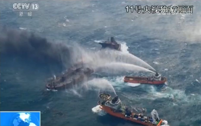 1月6日,巴拿马籍油船“桑吉”号与香港籍散货船“长峰水晶”号在长江口以东约160海里处发生碰撞,导致“桑吉”轮全船失火。截至13日,事发已经进入第七天,被撞的“桑吉”轮仍然在燃烧,并面临爆炸沉没风险, 船上32人中,1人遗体确认,其余31人失联。