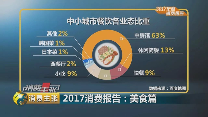 中国烹饪协会发布的《2017年度美食消费报告》显示,中式正餐仍占据强势主导地位,市场份额最高,占到一半以上,占57%。