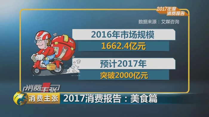 中国烹饪协会发布的《2017年度美食消费报告》显示,自2011年以来中国在线餐饮外卖外送市场一直保持较高速增长,2016年市场规模达到1662.4亿元,预计2017年突破2000亿元。