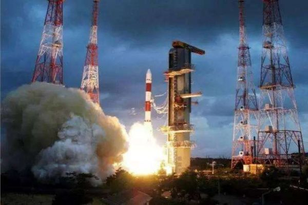 图为印度PSLV型火箭发射时的场景