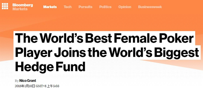 总之,这位通过德扑已经获得千万美金的职业玩家,即将开始人生新的探索,而为她提供“游戏场所”的桥水基金,也可谓大名鼎鼎。