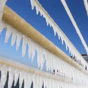 东港商务区木栈道护栏再现 " 冰瀑 " 美景