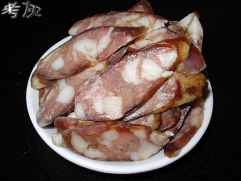 好的香肠蒸熟后,肥肉部分呈半透明状;劣质香肠蒸熟后,脂肪不那么透亮,而且盘底有色素蒸出。